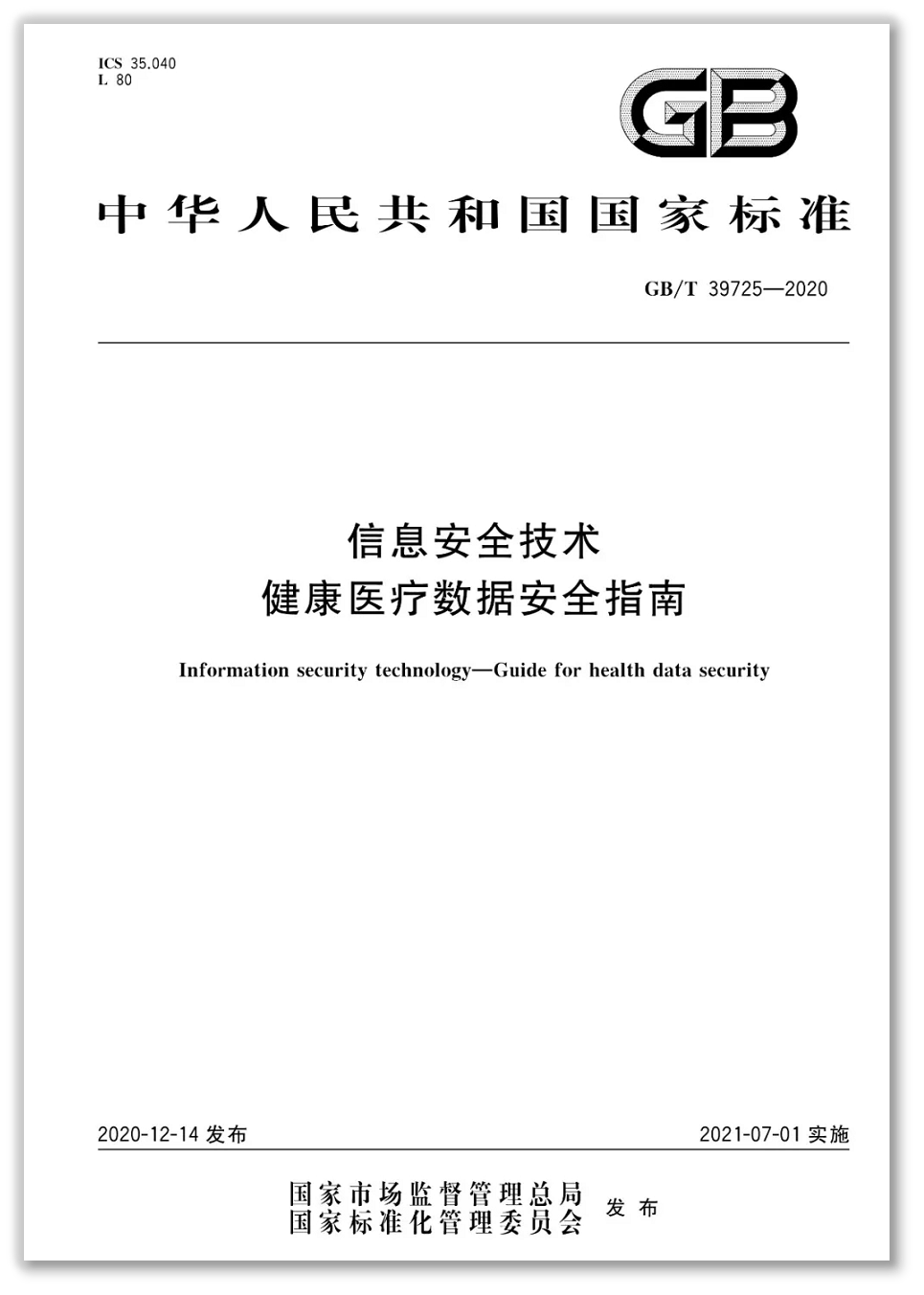 2020年年底,信安标委第28号国家标准公告,正式发布了《信息安全技术健康医疗数据安全指南》(GB/T 39725-2020,以下简称“安全指南”),自2021年7月1日期实施。